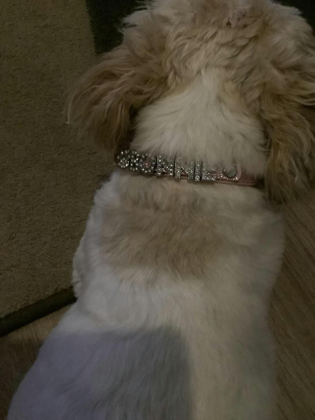 Features: Metallic diamante letters with your pet's name